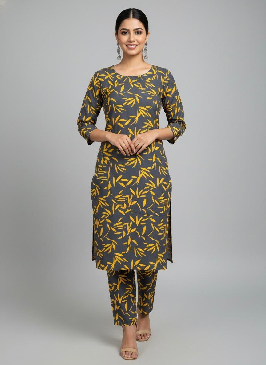 Premium Boski Linen with a smooth, soft feel. Grey & yellow leaf-print design that is durable and 100% color-fade resistant. Comes with confirmed 3.5 meters fabric, perfect for stitching 2 stylish pieces. Elegant, lightweight, and ideal for everyday wear.